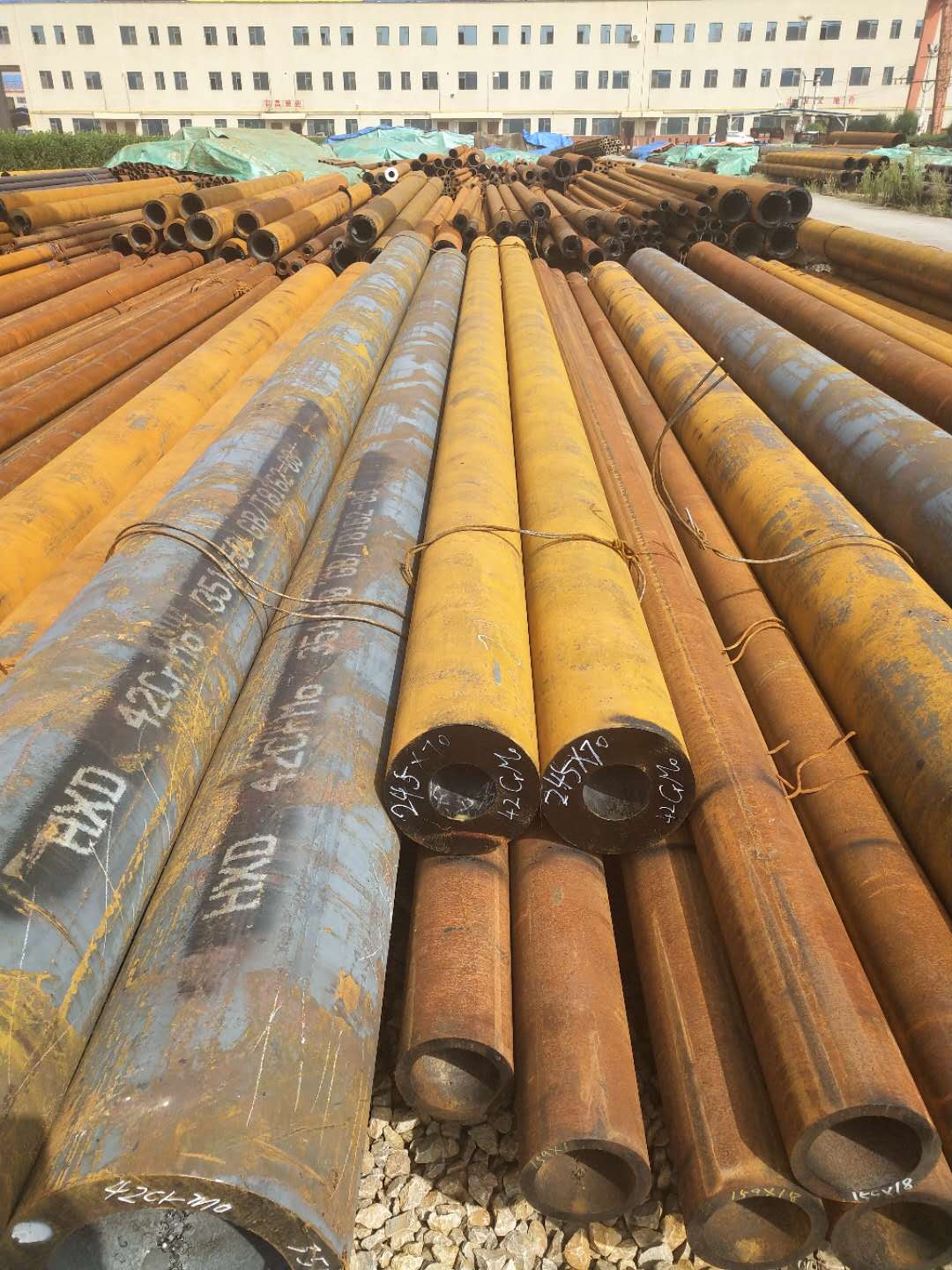 地質(zhì)鉆探及石油鉆探用無縫鋼管:為探明地下巖層結(jié)構(gòu)、地下水、石油、天然氣及礦產(chǎn)資源情況,利用鉆機(jī)打井。石油、天然氣開采更離不開打井,地質(zhì)鉆探用石油鉆探用無縫鋼管是鉆井的主要器材,主要包括巖芯外管、巖芯內(nèi)管、套管、鉆桿等。由于鉆探用管要深入到幾千米地層深度工作,工作條件極為復(fù)雜,鉆桿承受拉、壓、彎曲、扭轉(zhuǎn)和不均衡沖擊載荷等應(yīng)力作用,還要受到泥漿、巖石磨損,因此,要求管材必須具有足夠的強(qiáng)度、硬度、耐磨性和沖擊韌性,鋼管用鋼用“DZ”(地質(zhì)的漢語拼音字頭)加數(shù)字一代表鋼屈服點表示,常用的鋼號有DZ45的45MnB、50Mn;DZ50的40Mn2、40Mn2Si;DZ55的40Mn2Mo、40MnVB;DZ60的40MnMoB、DZ65的27MnMoVB。鋼管都以熱處理狀態(tài)交貨。